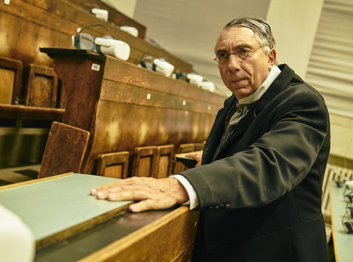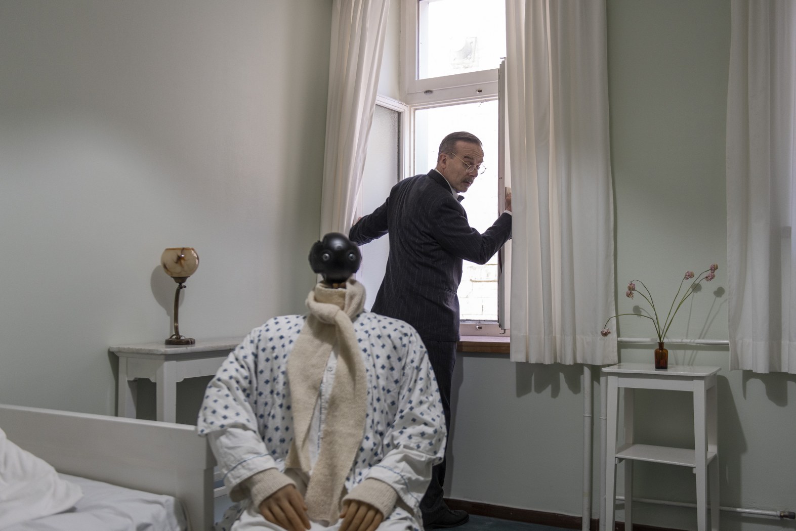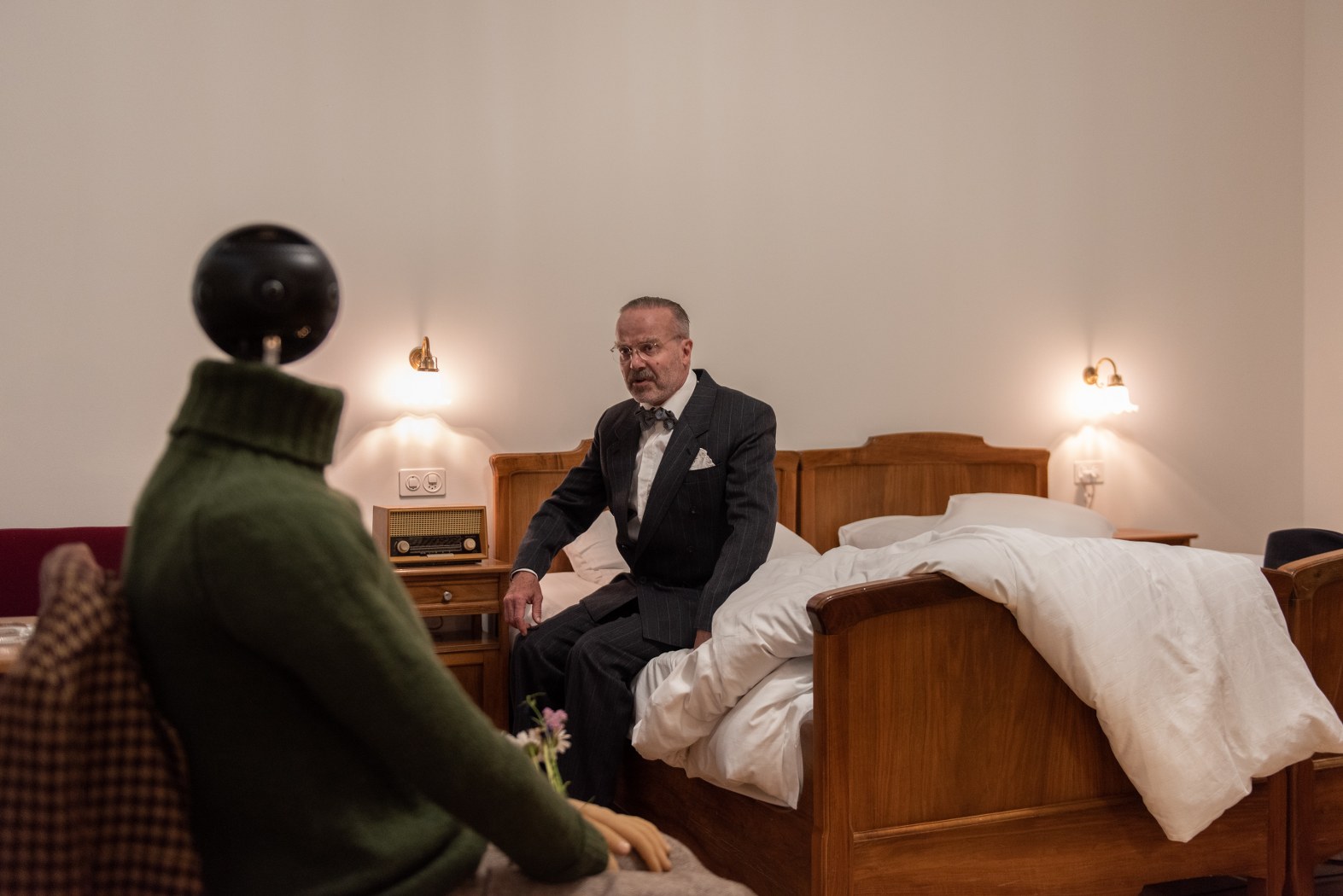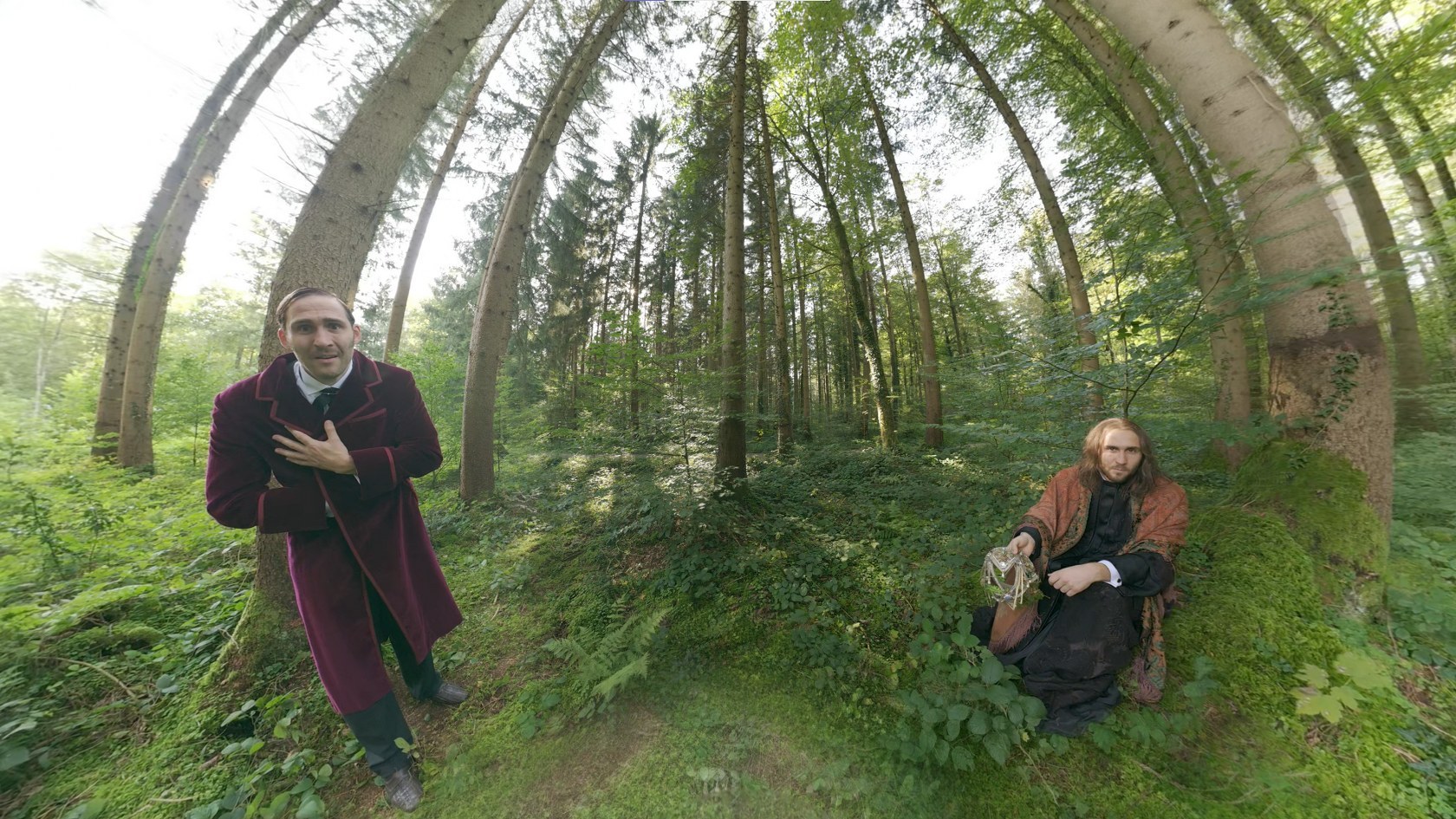 August 1954. Thomas Mann wohnt wieder einmal im Waldhaus Sils. Allein und aus der Perspektive des berühmten Schriftstellers betreten Sie sein Zimmer auf der Beletage. Aber am Schreibtisch sitzt ein Geist: Thomas Manns längst verstorbener Sohn Klaus. In dem Besucher erkennt Klaus seinen Vater und verwickelt ihn in ein Gespräch. Ausgestattet mit einer VR-Brille, erleben Sie hautnah die Auseinandersetzung zwischen Klaus Mann und seinem Vater, gespielt von Peter Jecklin in der virtuellen Realität, als Begegnung des realen mit dem ersehnten Ich. Und schliesslich auf überraschende Weise mit sich selbst.